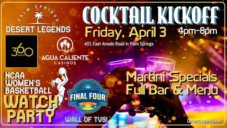 Desert Legends is taking over the entire 360 Sports Lounge for our epic kickoff cocktail party with martini specials and free munchies! Full bar and special menu available.